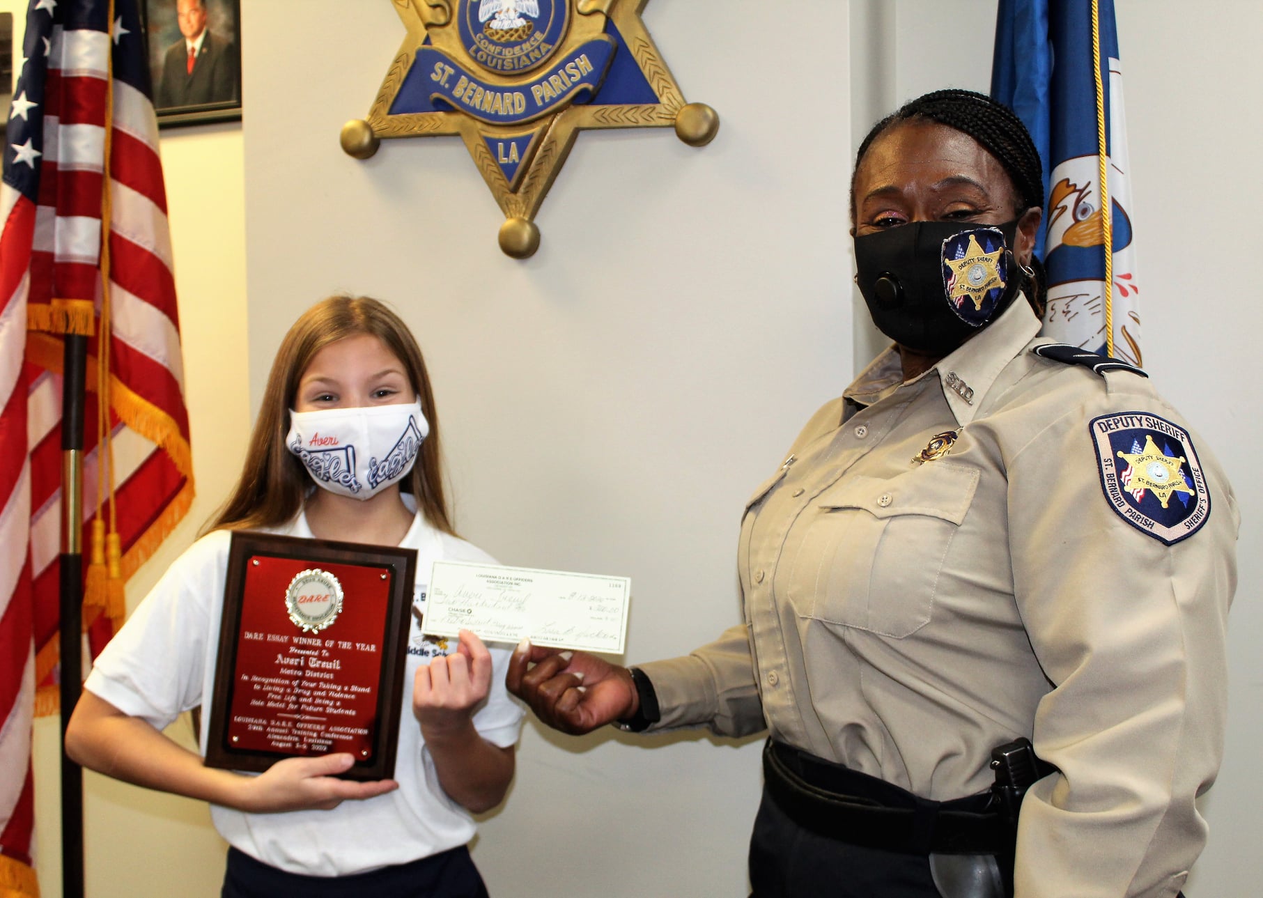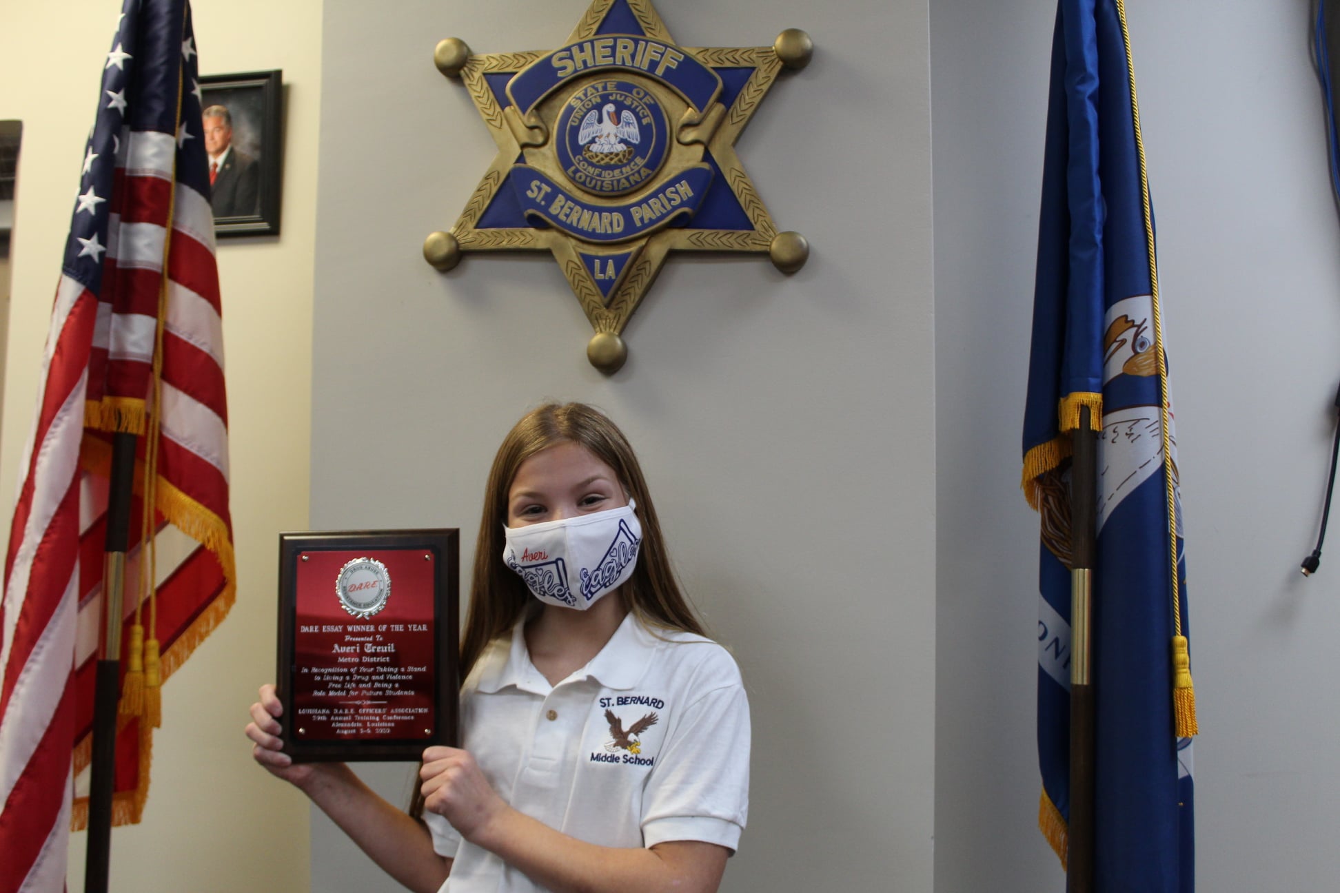 Averi, now a sixth-grader at St. Bernard Middle School, received the award, along with several other prizes, received the award from the Louisiana D.A.R.E. Officers Association 29th Annual Training Conference.
