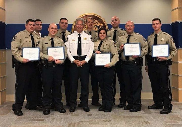 Five St. Bernard Parish Sheriff’s Office Deputies graduated Nov. 8 from the Peace Officers Standards and Training, or P.O.S.T., basic police academy at the St. Charles Parish Regional P.O.S.T. Academy. At the ceremony are, first row, from left: Graduates Dep. Stephen Oalmann and Dep. Keith St. Germain, Sheriff James Pohlmann, Graduates Dep. Michelle Waites, Dep. Bradley Labure and Dep. Colin O’Brien. Second row, from left: Cpt. Dennis Morgan, Lt. Kyle Brown, Dep. and Chaplain Aaron Johnson and Lt. Warren Chambon.
