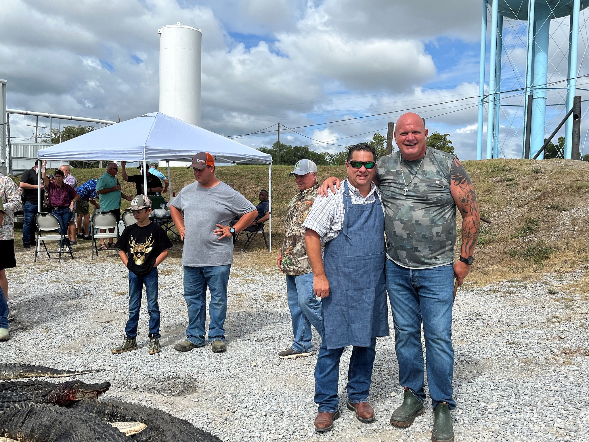 The four lucky winners of the alligator hunt, representatives from Labat Construction, Burkhardts Air Conditioning and Coast Concrete Services, hit the waters in the early morning hours of Friday, Oct. 6 with Adams, local commercial fisherman Kim Serigne Jr. and Mark Vogt with Bayou Bowfishing Charters.