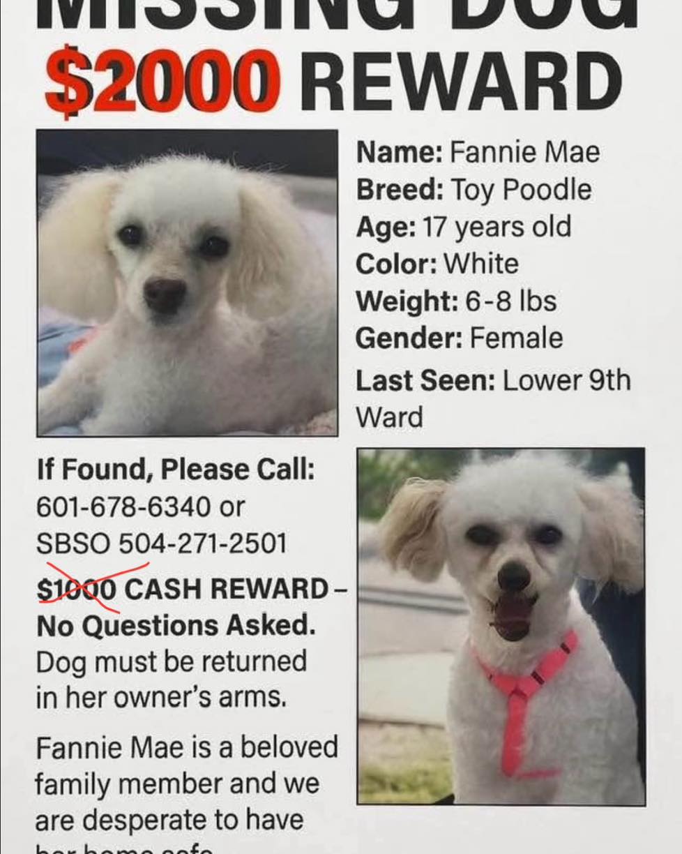 🚨 PLEASE SHARE: REWARD INCREASED TO $2,000 🚨
