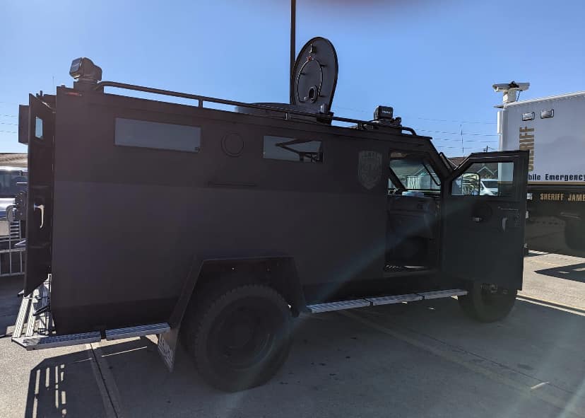 Sheriff James Pohlmann stopped by to visit with the kids and deputies brought along the armored SWAT vehicle, Marine Division airboat and Mobile Command Post.