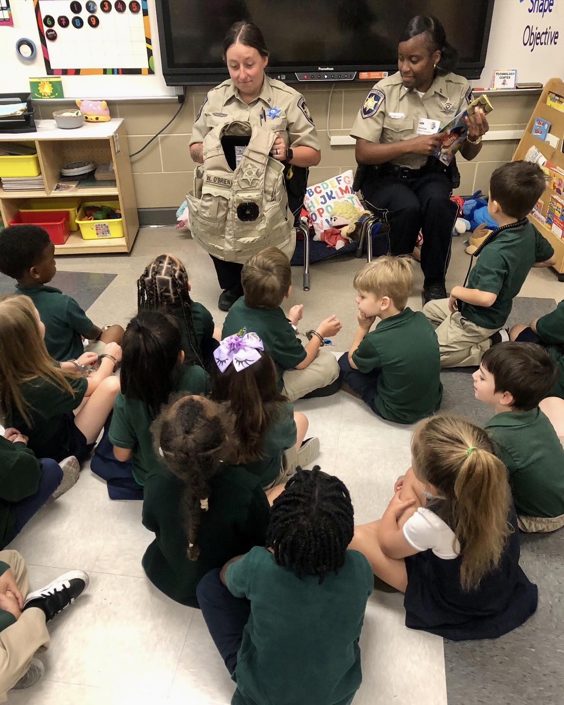 St. Bernard Sheriff’s Office Dep. Whitney O’Brien, with the Field Operations Bureau Patrol Division, and Dep. Paradise Donaldson, with the Corrections Division at the Parish Prison, visited with students at Joseph Davies Elementary School today.