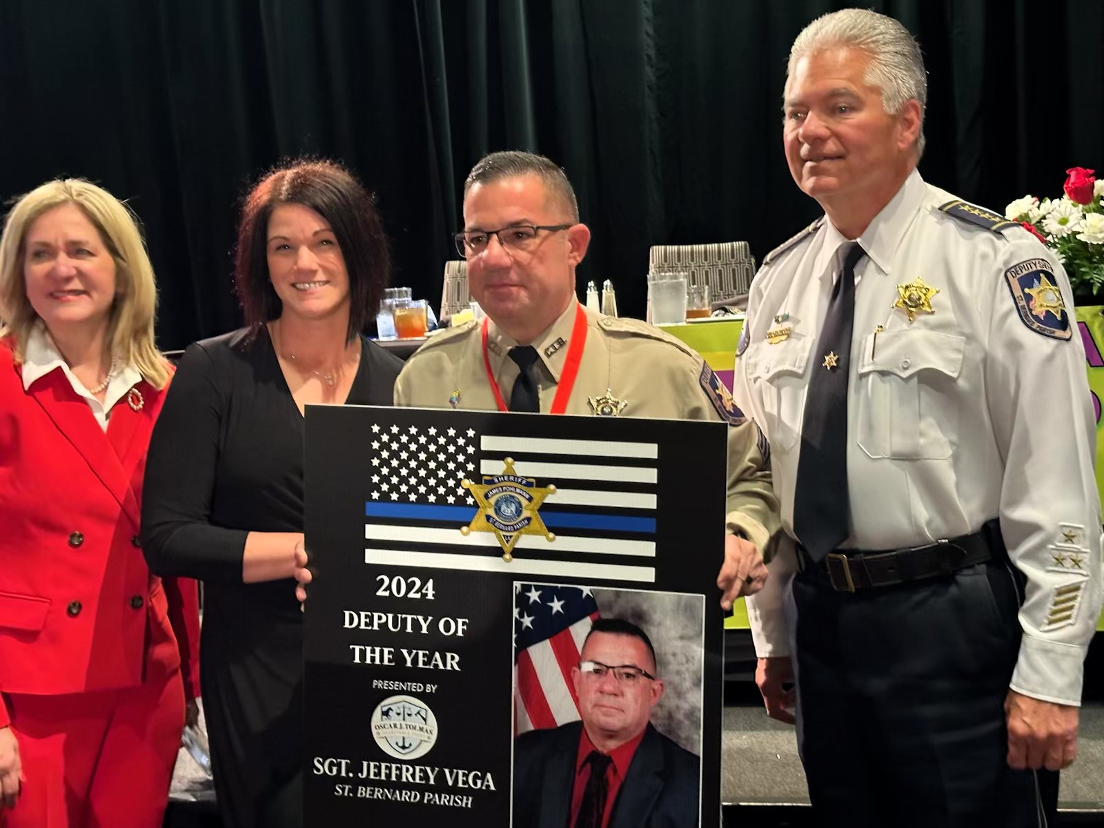 St. Bernard Sheriff’s Office Detective Sgt. Jeffrey Vega received the 2024 Oscar J. Tolmas Charitable Trust – Crimestoppers Outstanding Service to the Community Award Friday, March 1 at the 39th Annual Crimestoppers Award Luncheon, Sheriff James Pohlmann said.