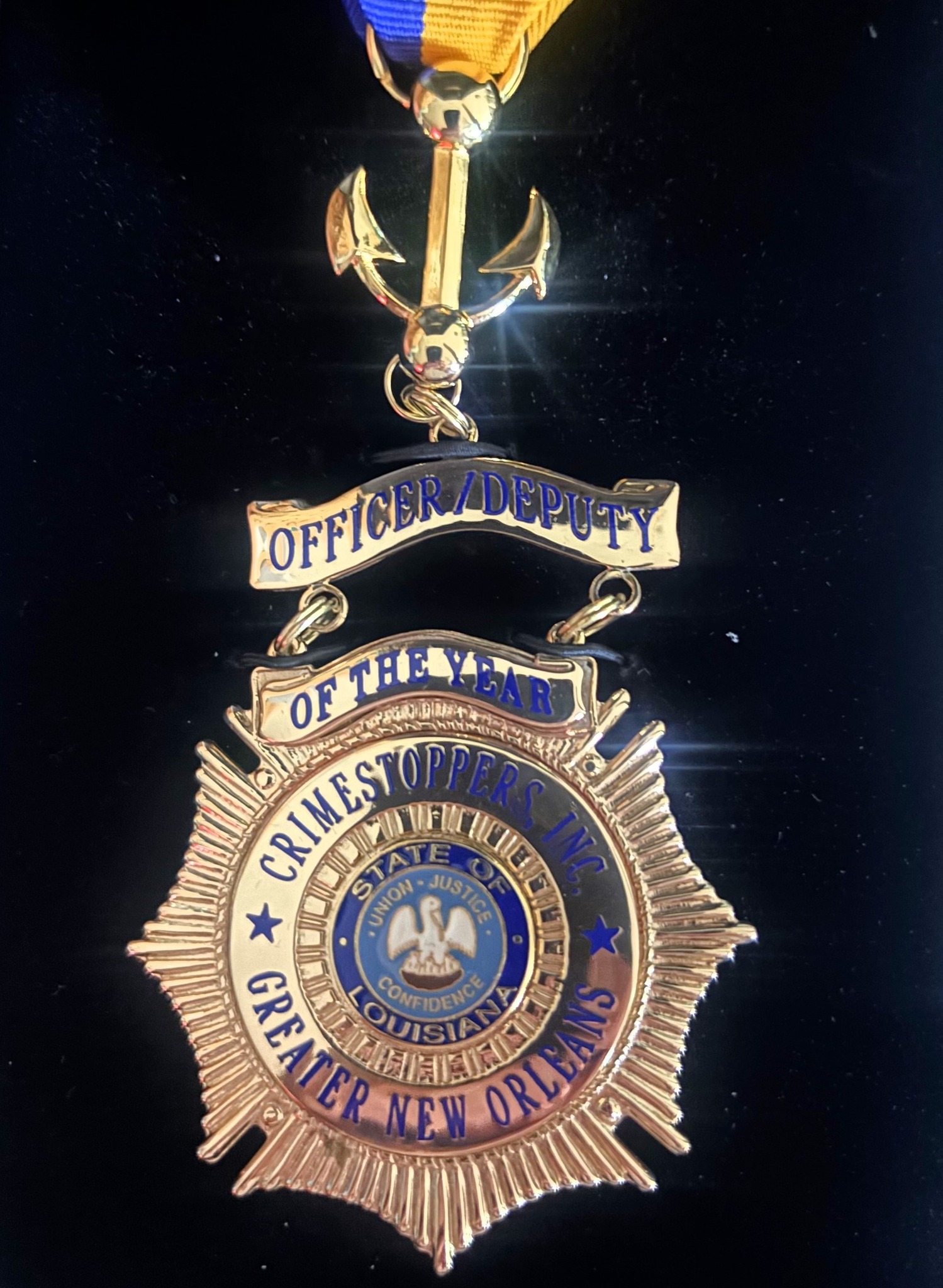 Darlene Cusanza, president and chief executive officer of Crimestoppers of Greater New Orleans, said the award, sponsored by the Oscar J. Tolmas Charitable Trust, honors commissioned law enforcement officers who exemplify the core values of the law enforcement oath and go above and beyond in service to the community.