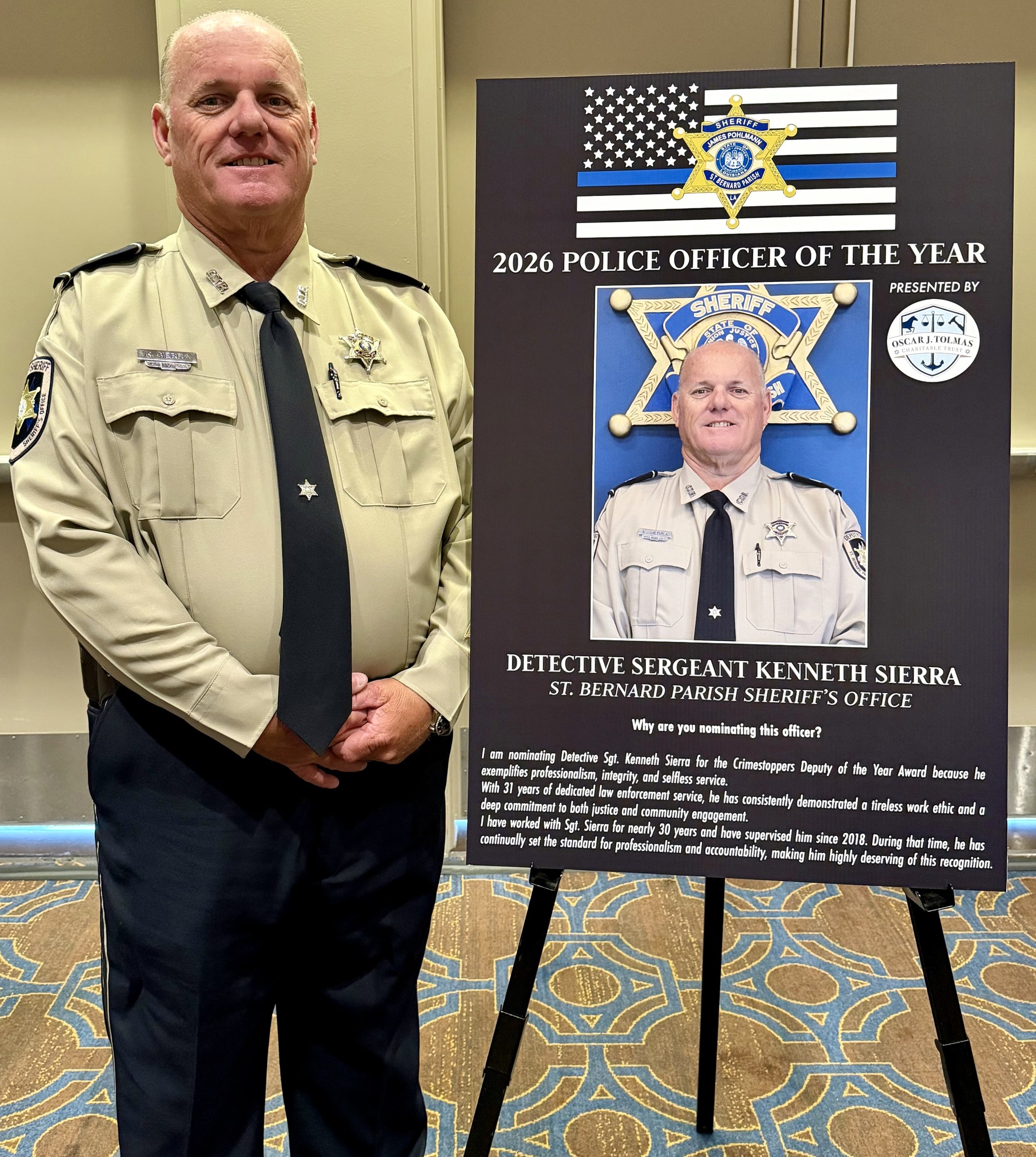 St. Bernard Sheriffâs Office Detective Sgt. Kenneth Sierra was among a dozen Deputies of the Year honored at the 41st Annual Crimestoppers of Greater New Orleans Awards Luncheon held Friday, April 10, at the Sheraton New Orleans, Sheriff James Pohlmann said.
