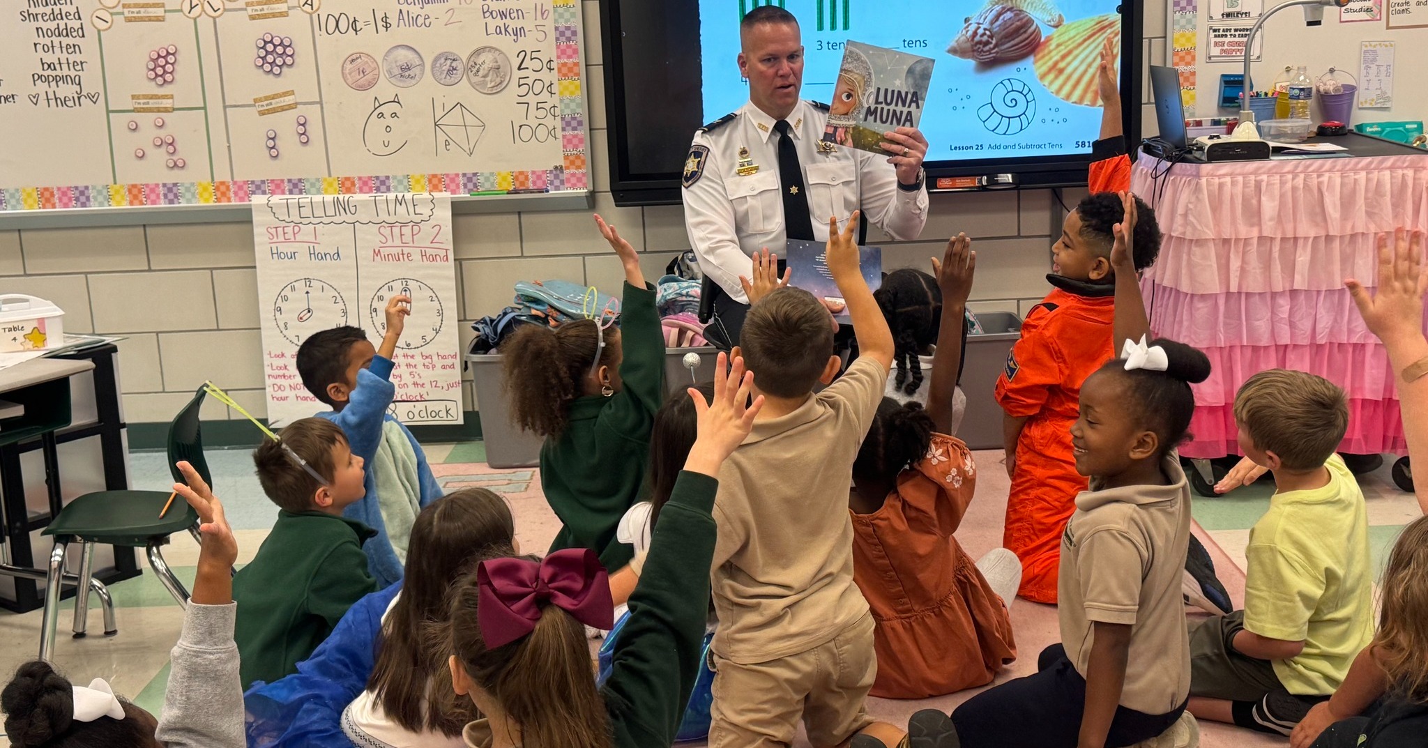 Sheriff James Pohlmann said deputies participate in Literacy Week to inspire a love of reading in children and highlight the importance of education. Their involvement also helps build positive relationships between law enforcement and the community from a young age.