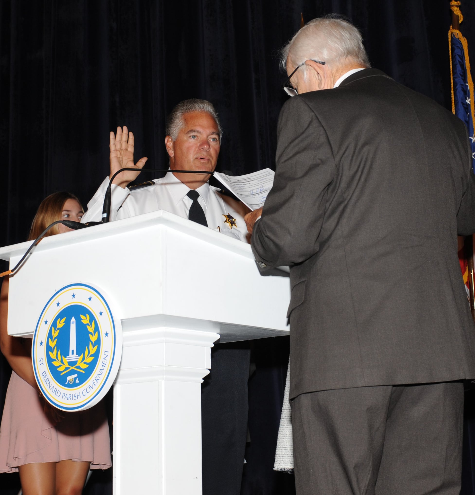 St. Bernard Sheriff James Pohlmann was sworn in Wednesday, July 1 for his third four-year term as Sheriff of St. Bernard during a small ceremony held at the St. Bernard Civic Center in Chalmette.