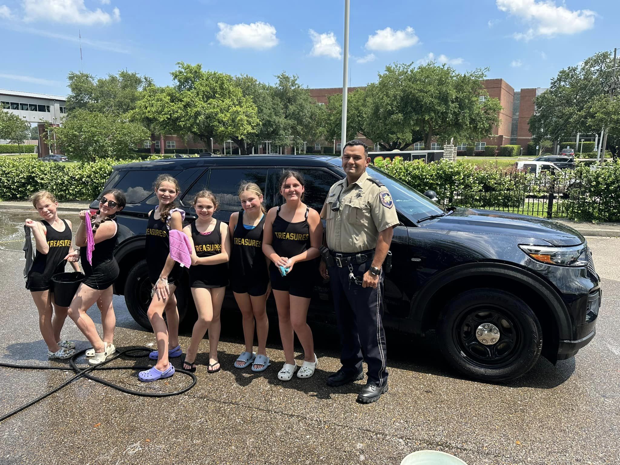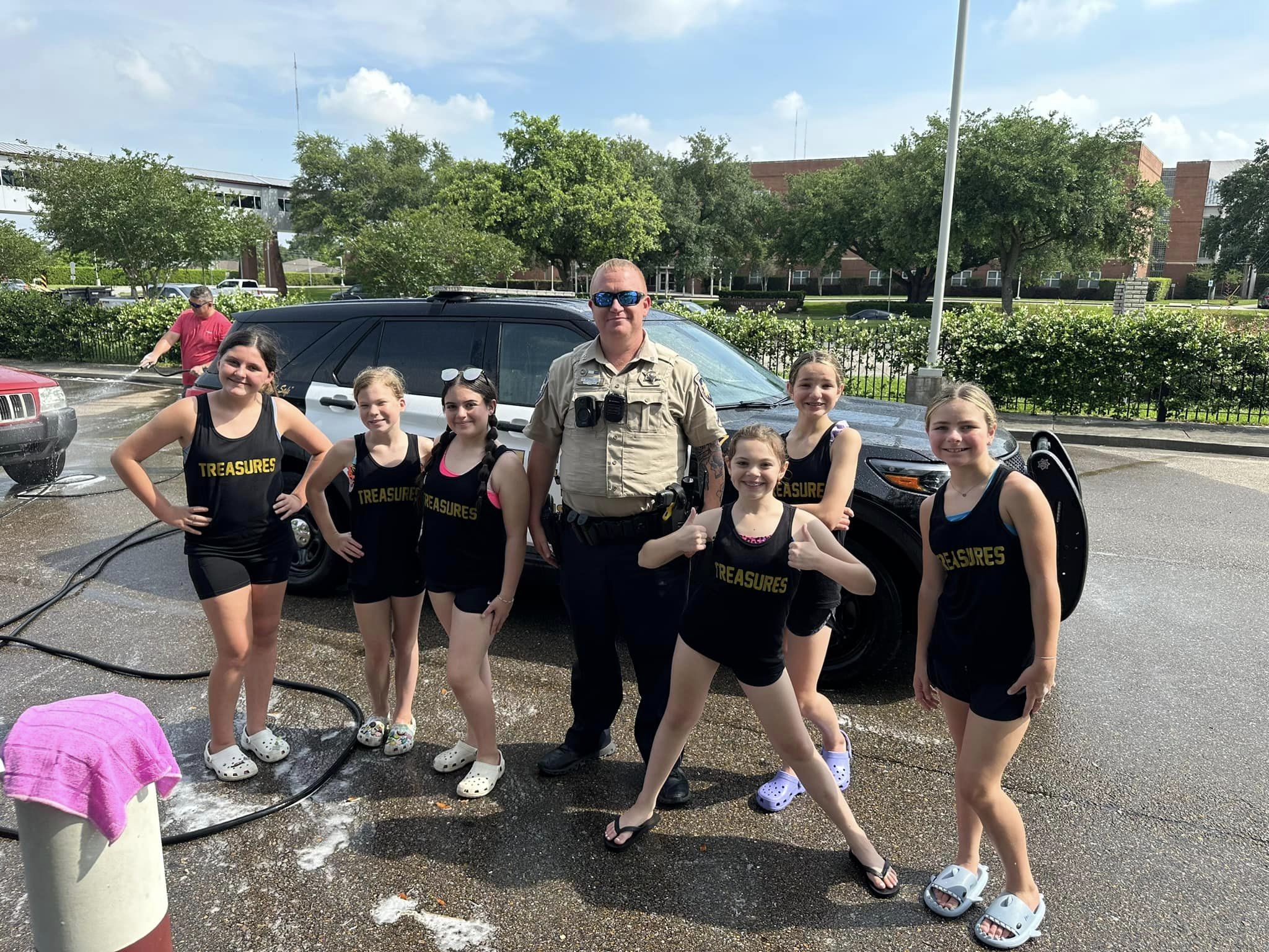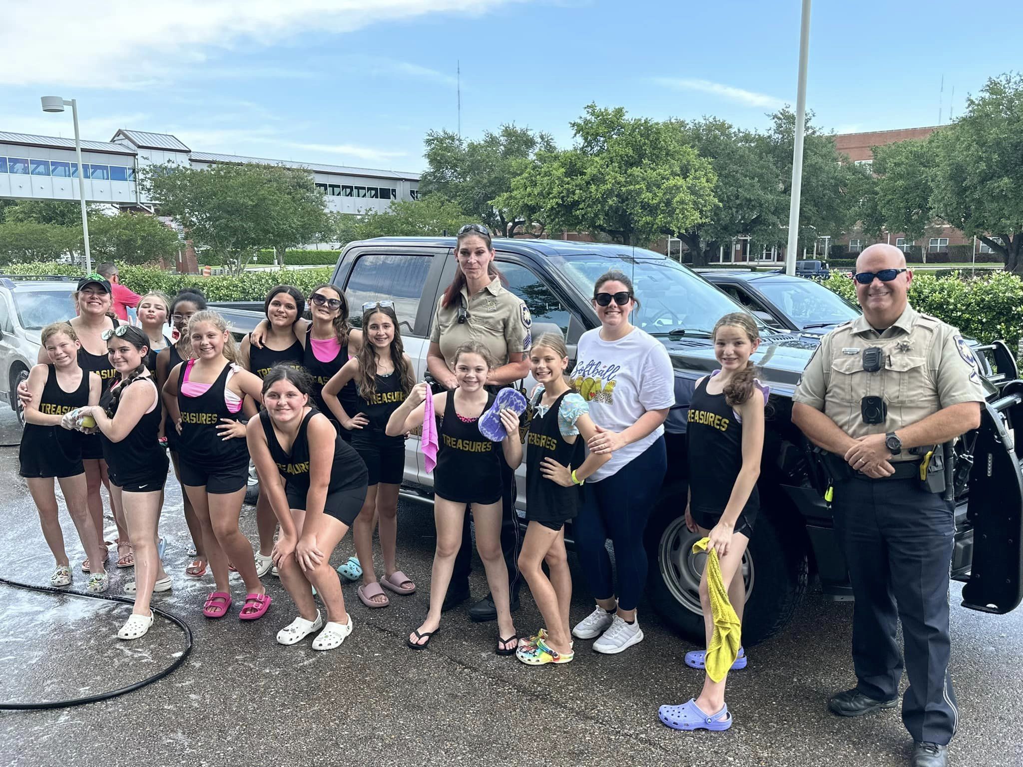 Several St. Bernard Sheriff’s Office deputies stopped by the N. P. Trist Middle School Trist Treasures Dance Team car wash fundraiser today.
