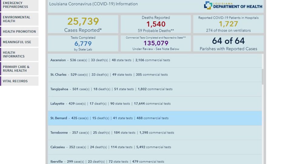 St. Bernard Parish Coronavirus Update – April 23, 2020