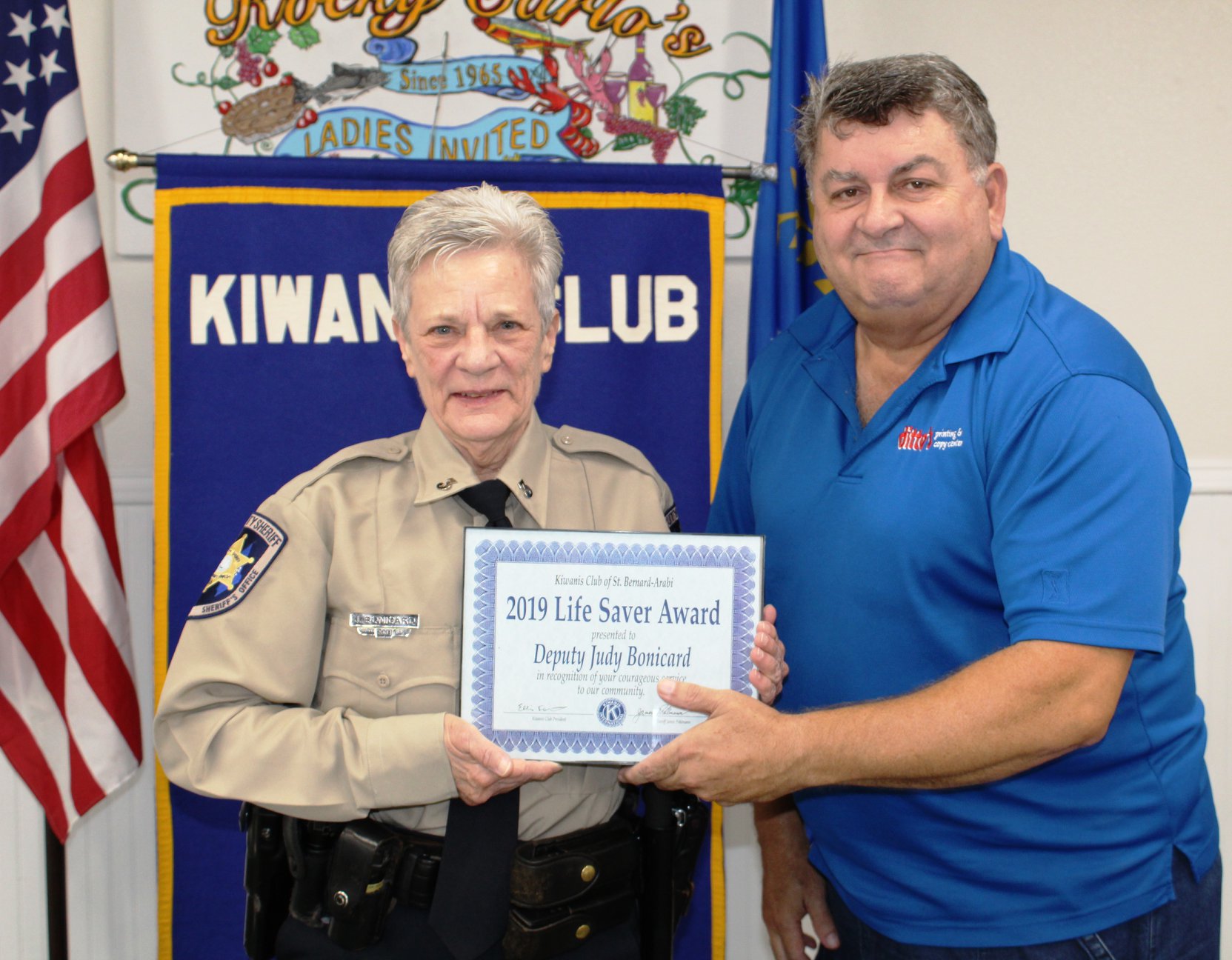 St. Bernard Sheriff’s Office Dep. Judy Bonicard received the Kiwanis Club of St. Bernard-Arabi Life Saver Award at a banquet hosted by Kiwanis on July 16 at Rocky and Carlo’s Restaurant in Chalmette, Sheriff James Pohlmann said.