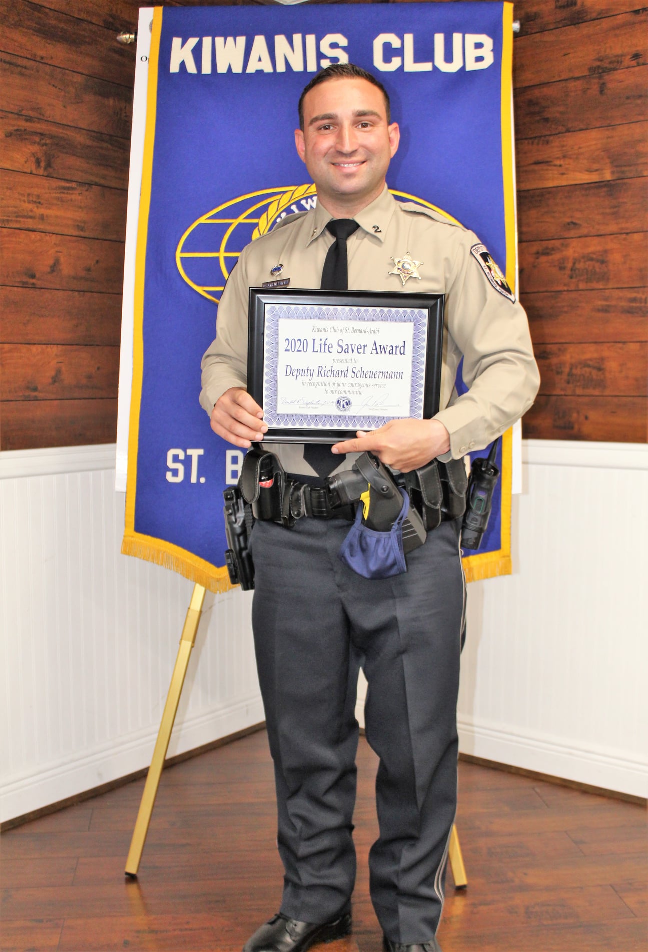St. Bernard Sheriff’s Office Dep. Richard Scheuermann received the 2020 Kiwanis Club of St. Bernard-Arabi Life Saver Award at a banquet hosted by Kiwanis today (Sept. 22) at Rocky and Carlo’s Restaurant in Chalmette, Sheriff James Pohlmann said.
