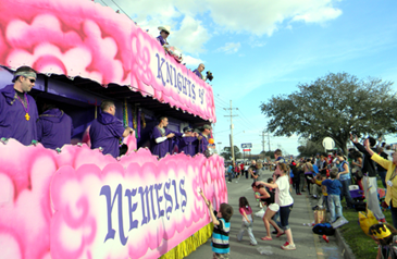 This year’s Nemesis parade, featuring more than 13 floats, several marching units and more than 200 riders, will follow the traditional route, beginning and ending at the Frederick J. Sigur Civic Center, 8245 W. Judge Perez Drive, with U-turns at the intersections near Dr. Meraux Boulevard and Campagna Drive.