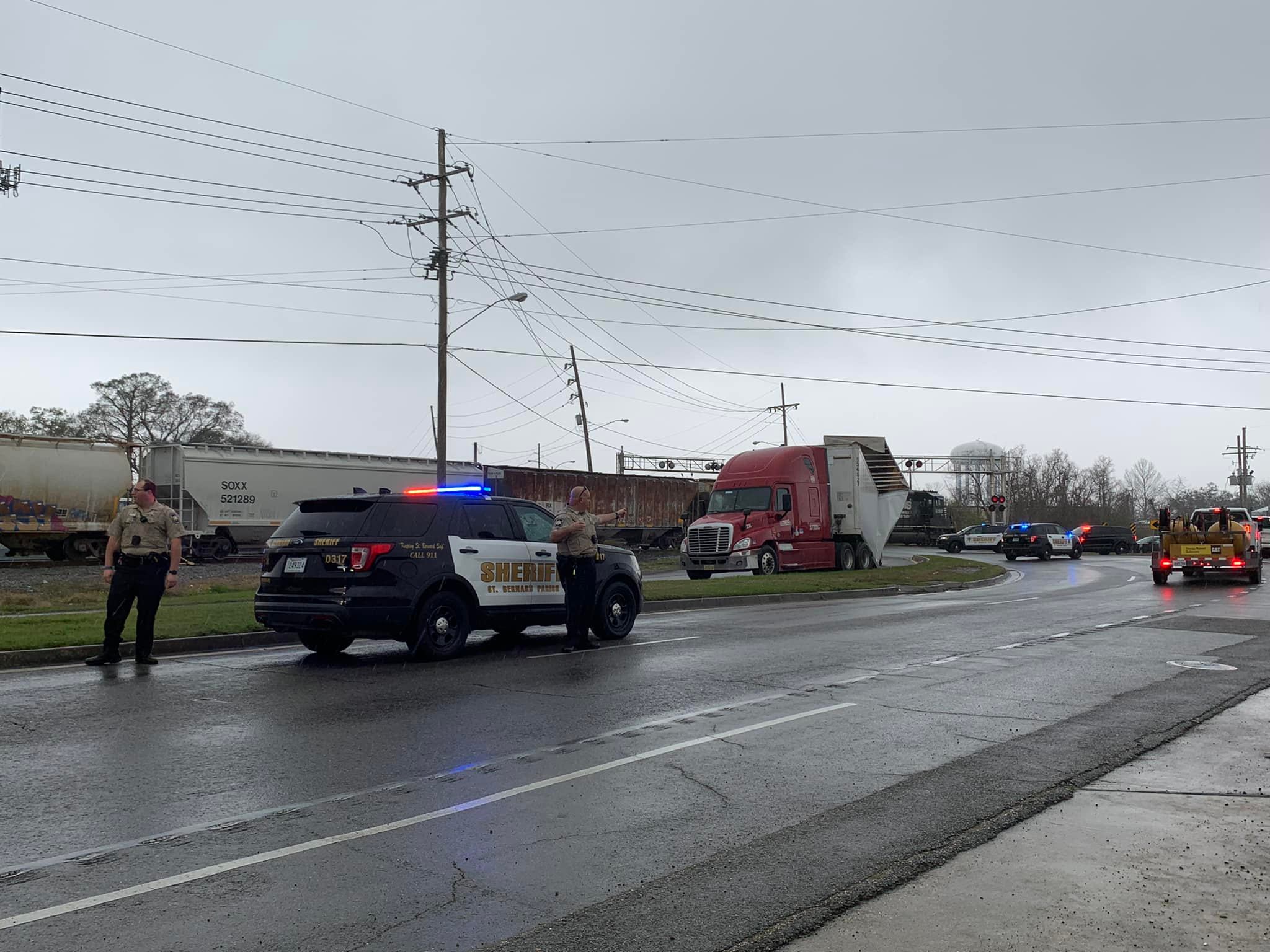 The St. Bernard Sheriff’s Office is on the scene of an accident involving an 18-wheeler and a Norfolk Southern Railroad train at the corner of St. Claude Avenue and Center Street in Arabi. The highway is closed in both directions and traffic is being diverted to Judge Perez Drive.